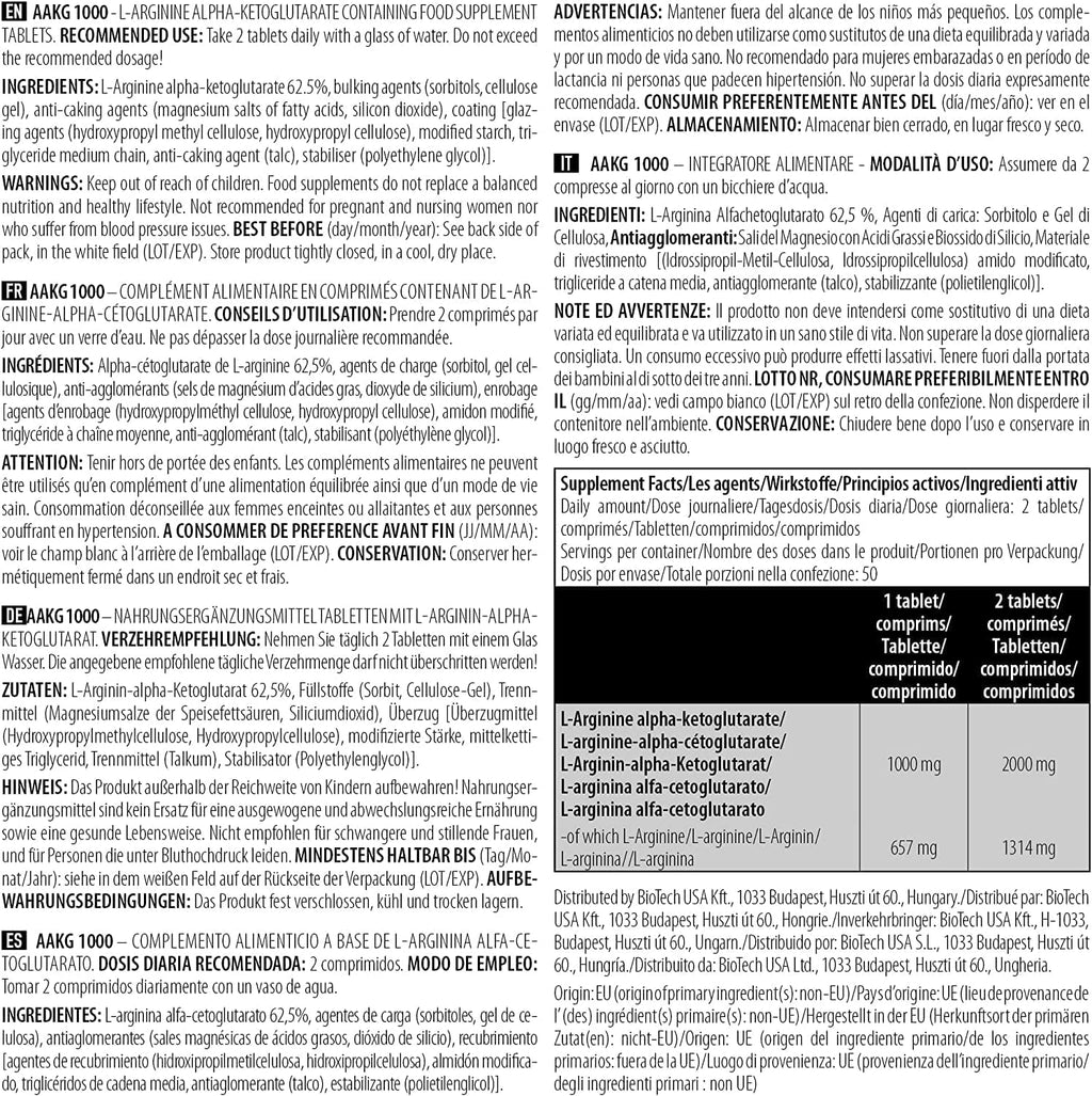 AAKG 1000 from Biotech USA is a pre-workout that provides 1000 mg of L-arginine, a nitric oxide precursor that improves vasodilation to provide greater oxygen and nutrients to muscles.
