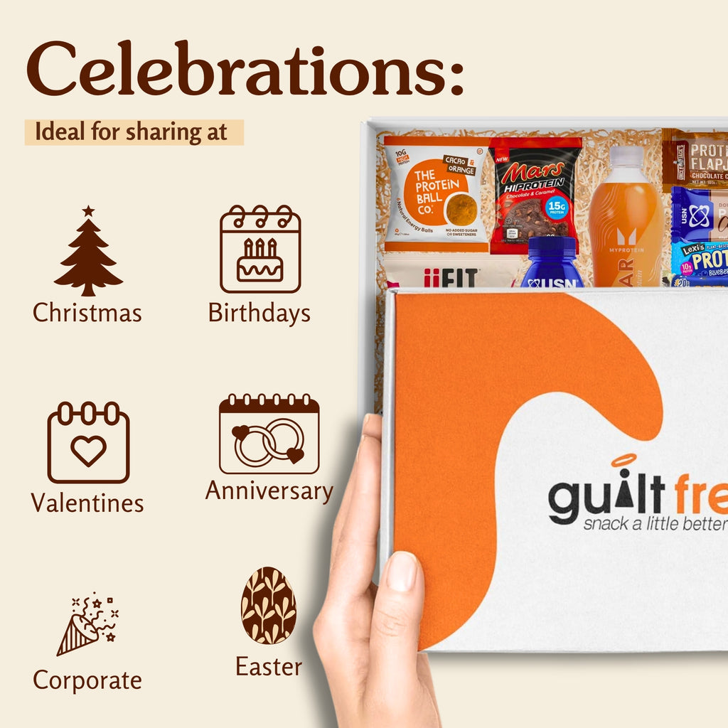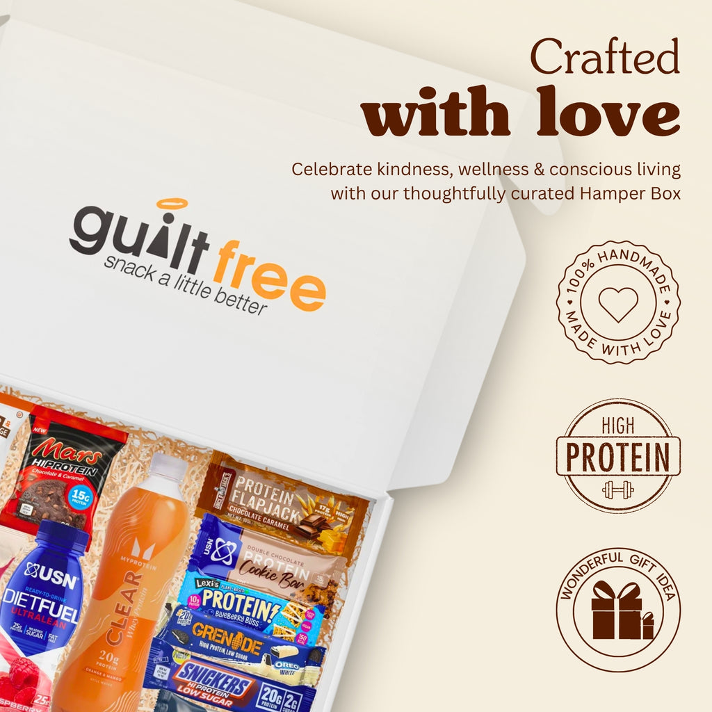 Indulge in a delectable assortment of protein-packed snacks with our Protein Snack Gift Box. This curated collection offers a variety of flavourful and satisfying treats, perfect for fuelling your active lifestyle or satisfying those cravings while adhering to your fitness goals. From savoury jerky and protein bars to roasted nuts and crunchy protein chips, each snack is carefully selected to provide a wholesome blend of nutrients and deliciousness. Whether you're an athlete seeking a convenient post-workout replenishment, an office worker in need of an energising mid-day boost, or simply someone who appreciates tasty and nutritious bites, this gift box has something for everyone. Conveniently packaged for on-the-go enjoyment or as a thoughtful present for health-conscious loved ones, this Protein Snack Gift Box is a must-have for those seeking a delightful and nourishing snacking experience.