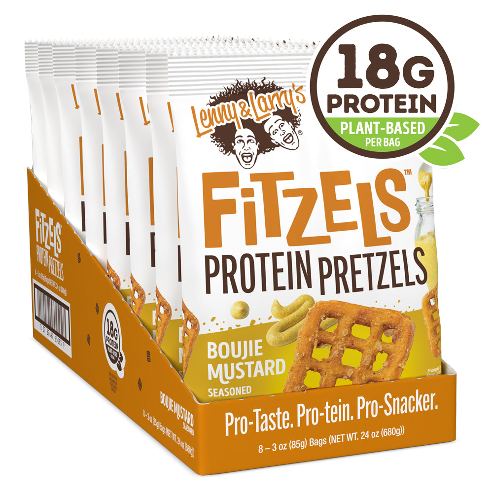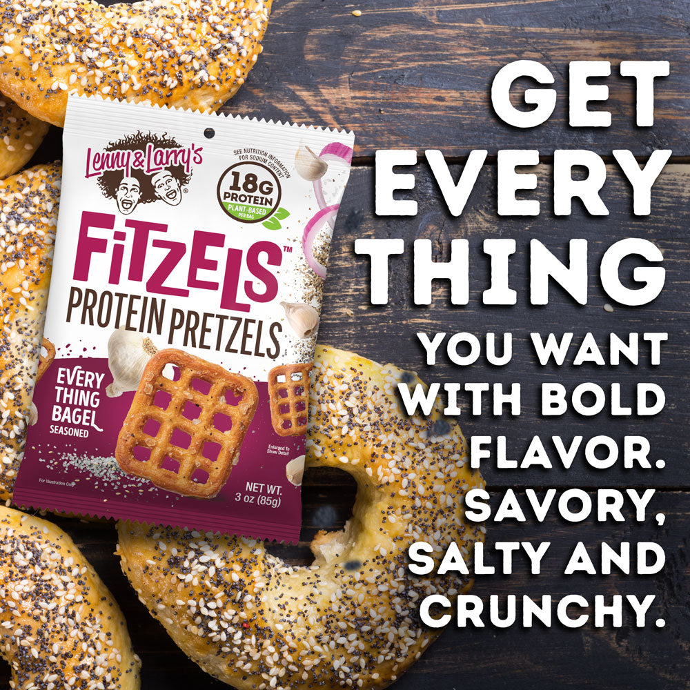 Lenny and Larry's Protein Pretzels combine fitness and pretzels to give you their latest product... Fitzels! The first of its kind on the market, each large packet holds three full servings to deliver 18-grams of protein per bag with just a single gram of saturated fats.