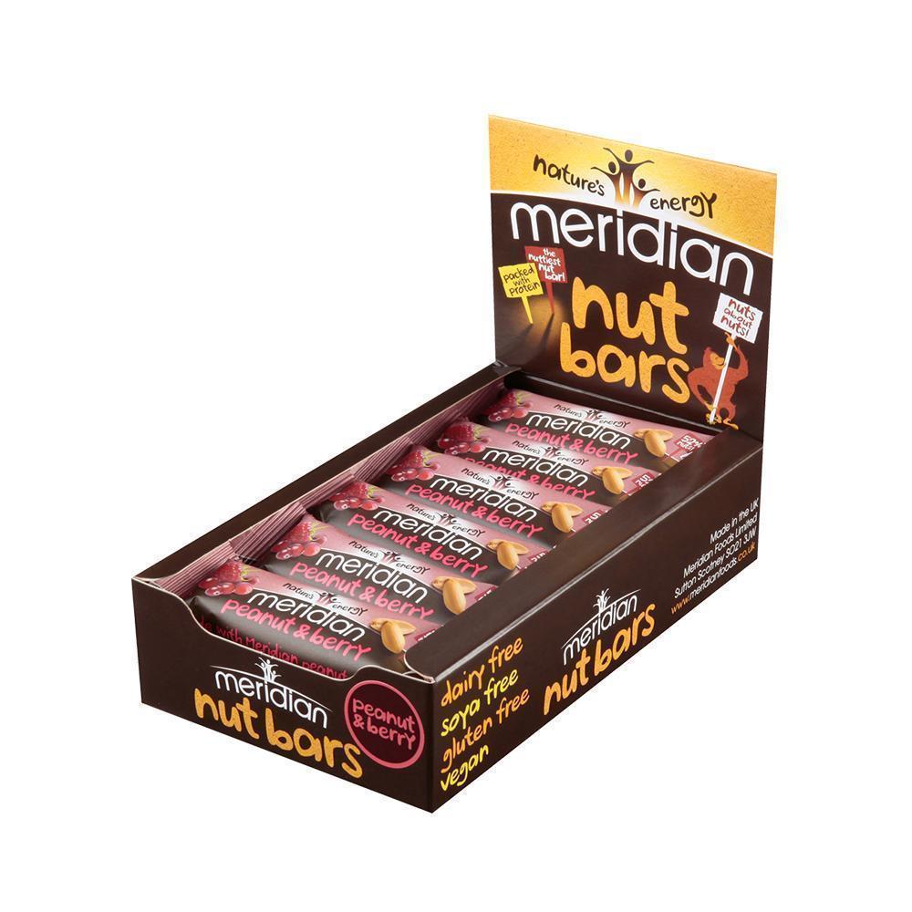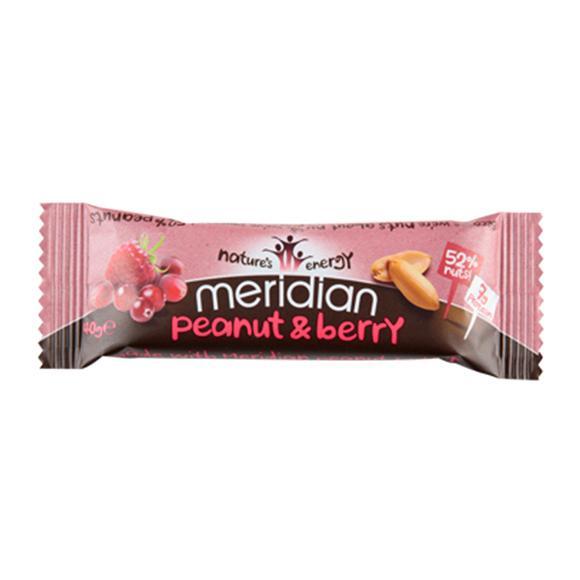 Meridian Peanut and Berry Bar 40g is a delicious new protein-packed treat featuring Meridian's popular palm oil-free peanut butter. The Peanut and Berry bar has 52% peanuts along with cranberries and raspberries for a delicious balance of fruit and nut. Crammed with peanuts, each delicious nut bar offers a high content of protein, allowing hungry snackers to load up on an excellent source of nutrients and energy rather than making bad choices in the snack department when on-the-go.