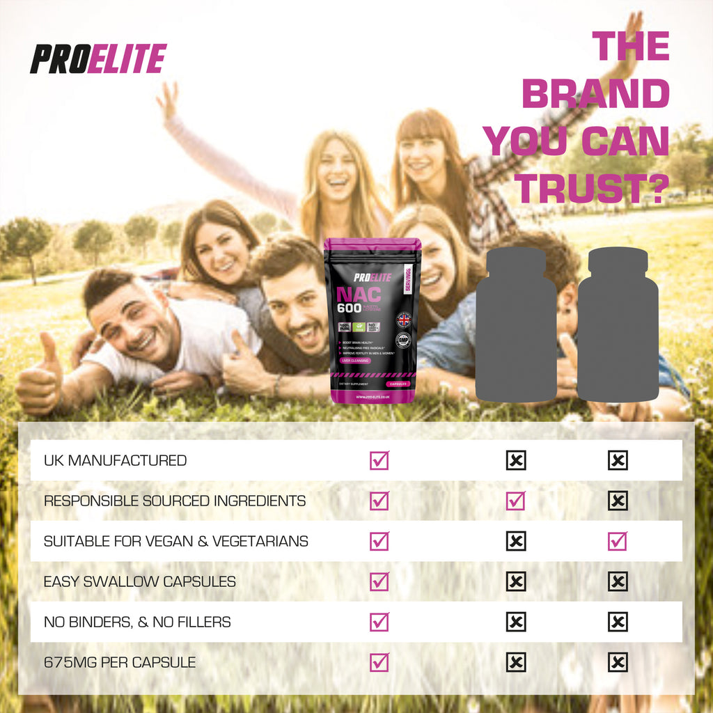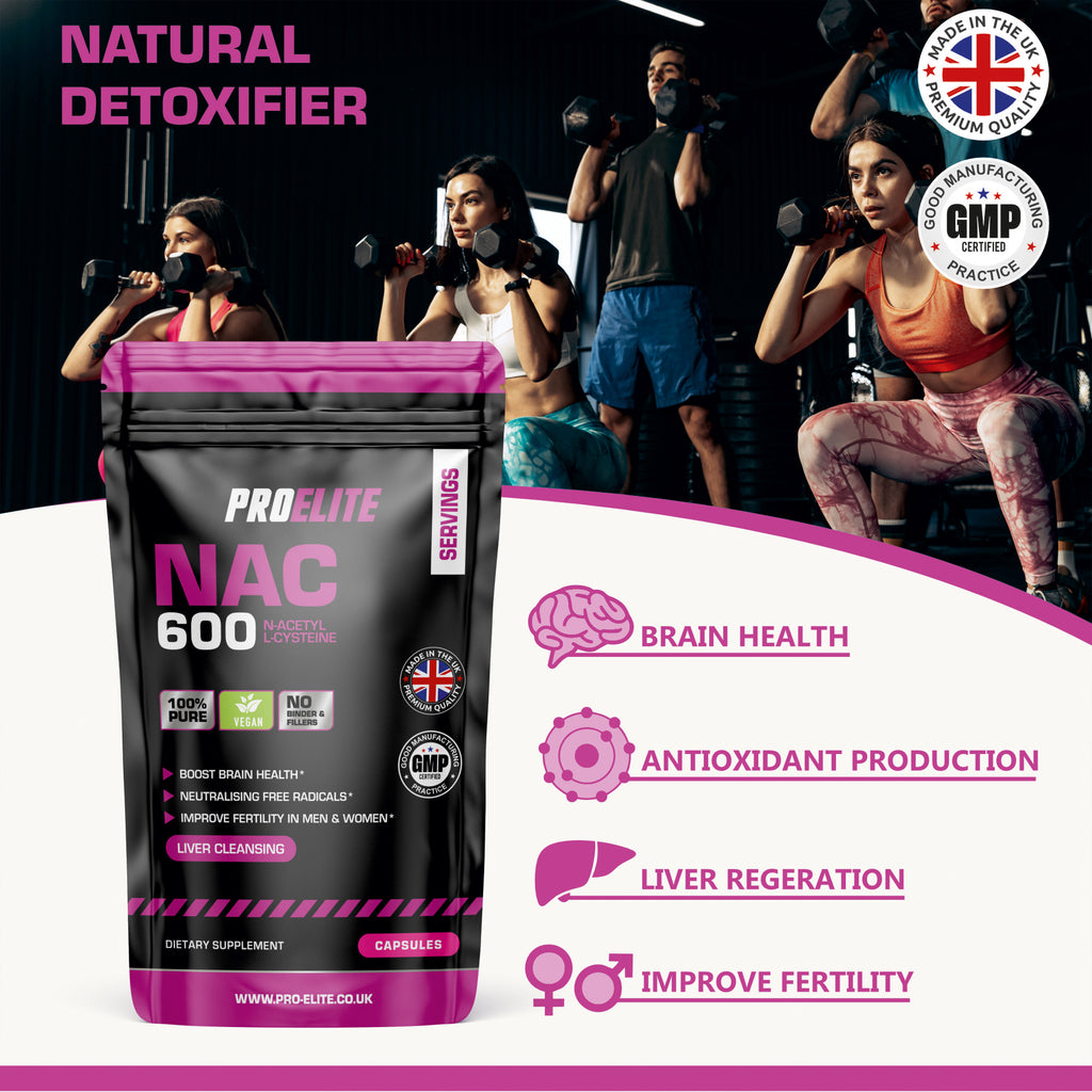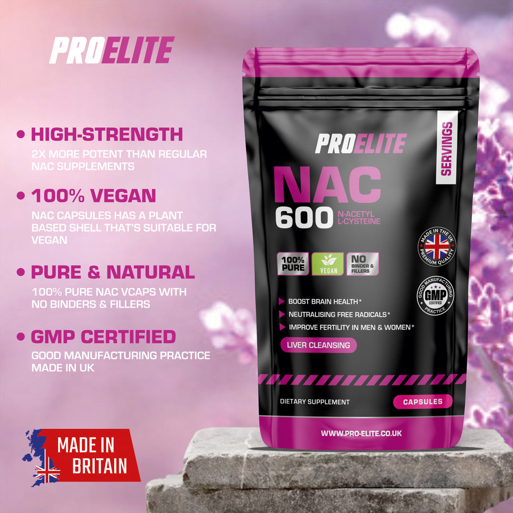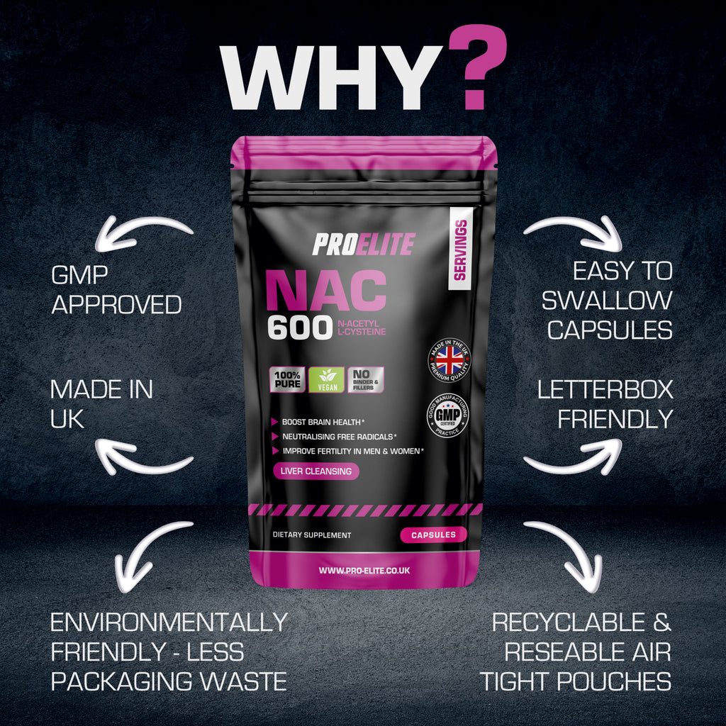 NAC (N-Acetyl L-Cysteine), HPMC Vegan Capsule, NO Fillers, NO Binders, NO Caking Agents, NO Magnesium Stearate.