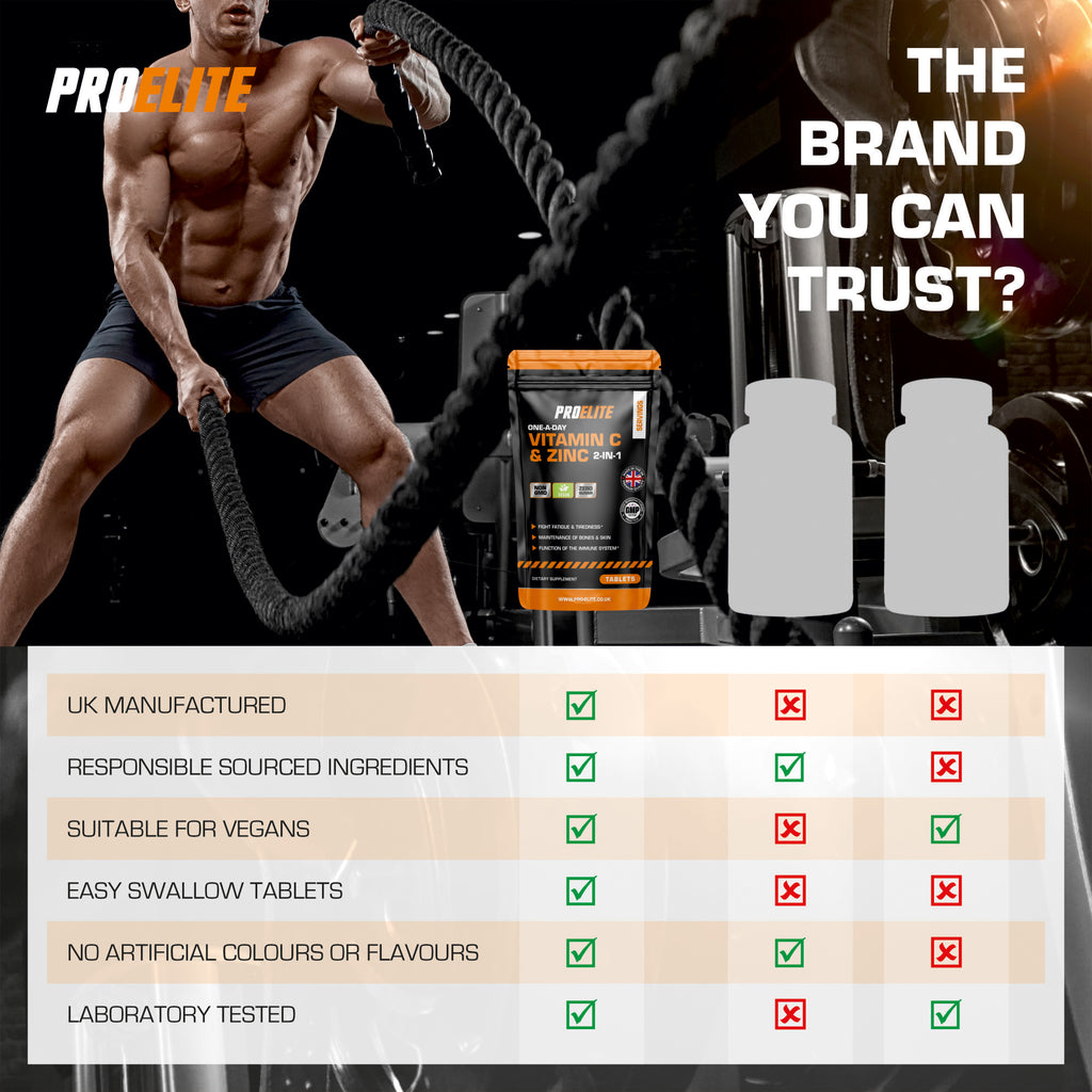 PROELITE VITAMIN C & ZINC is like no other product on the market! containing an advanced formulation of Zinc, and Vitamin C which contribute to the normal function of the immune system and to the protection of cells from oxidative stress.