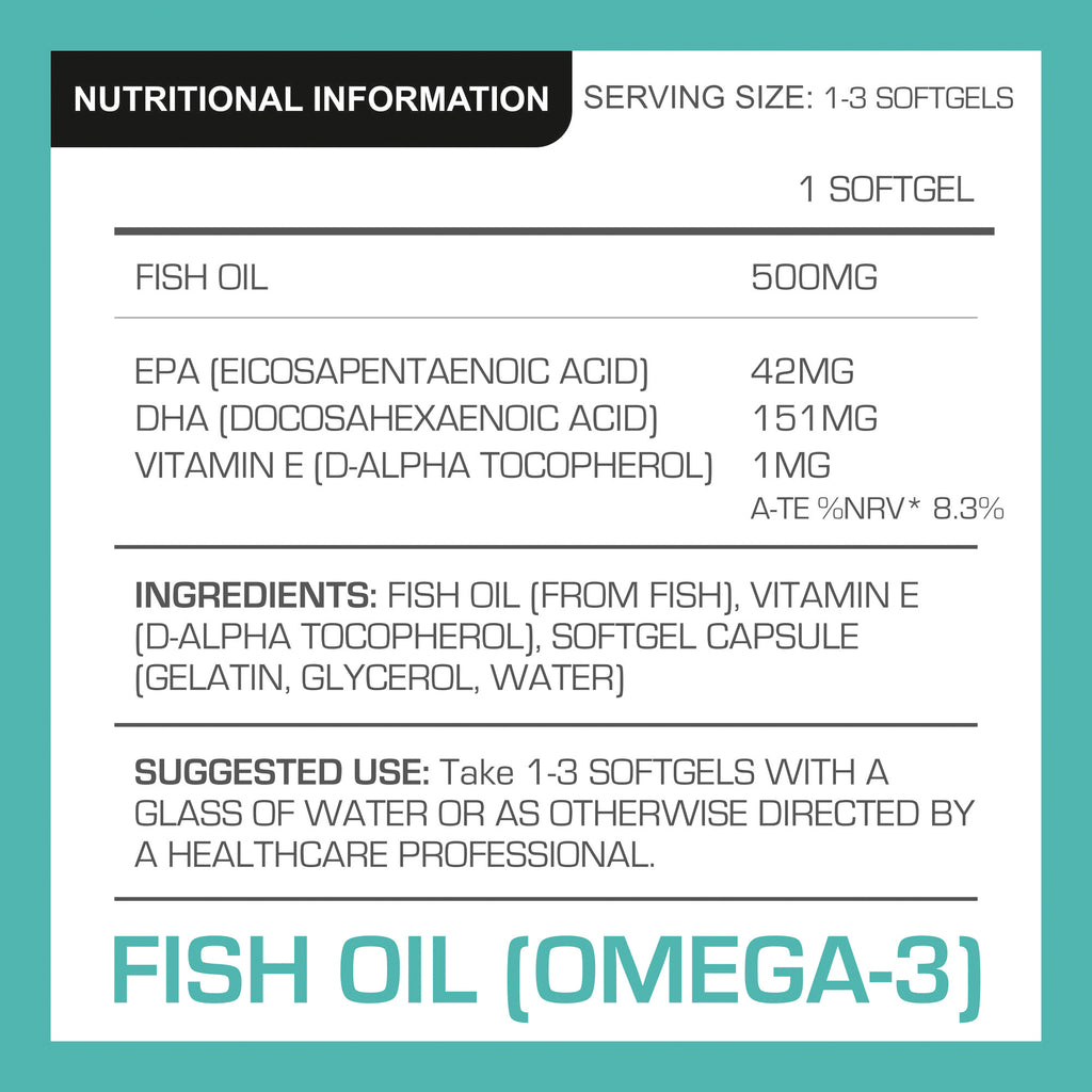 Fish oil softgels are derived from the fat of a variety of oily fish. Fish contain a natural source of Omega 3 essential fatty acids (EFA), and Docosahexaenoic Acid (DHA) . DHA and EPA are essential fats that cannot be made by your body which are important nutrient that provides many health benefits. EPA and DHA contribute to the normal function of the heart. DHA supports normal vision and brain function.
