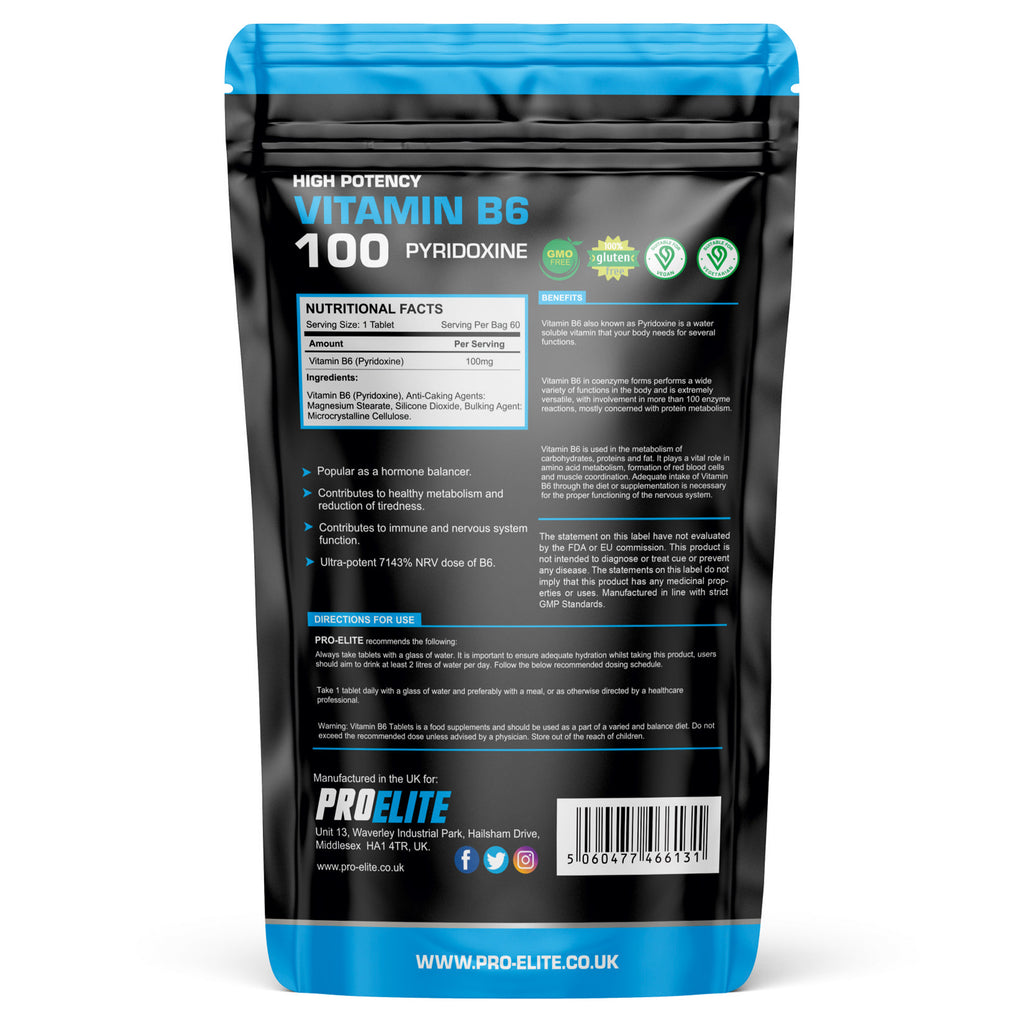 Warning: Vitamin B6 Tablets is a food supplements and should be used as a part of a varied and balance diet. Do not exceed the recommended dose unless advised by a physician. Store out of the reach of children.