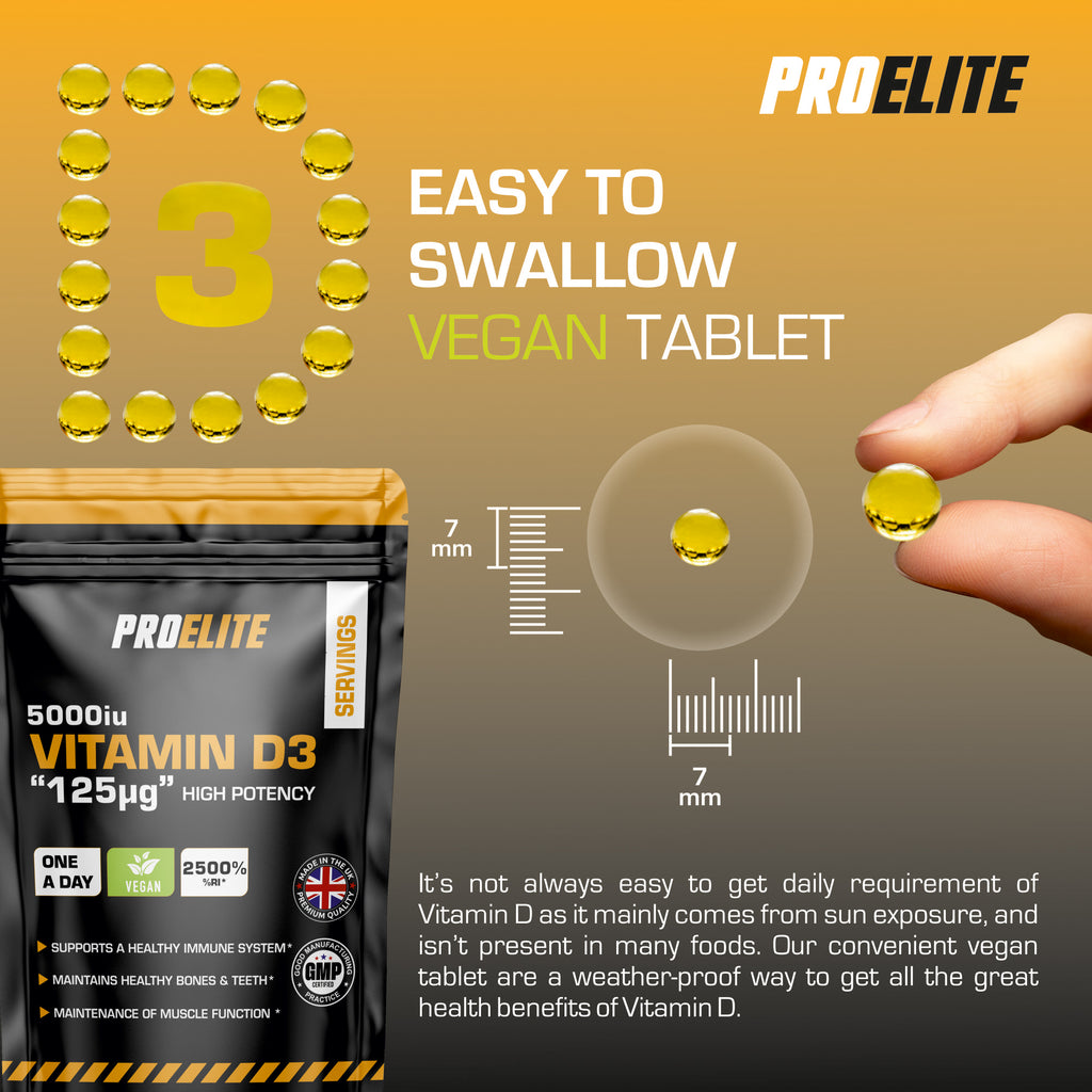 PROELITE Vitamin D3 softgels are a specific, high-strength form of vitamin D, which promotes normal bone health and contributes to the maintenance of healthy immune function, as well as playing a role in cell division.