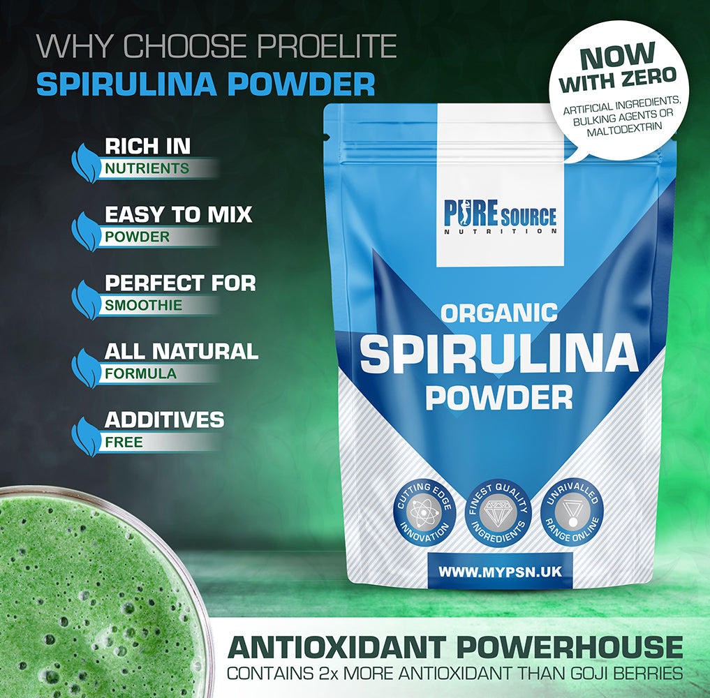 For optimum results take 5g (1 Scoop) of Pure Source Nutrition Spirulina daily. Ideally consume 1-2 times daily with meals. Mixing with beverages, such as fruit juice, will improve the taste.