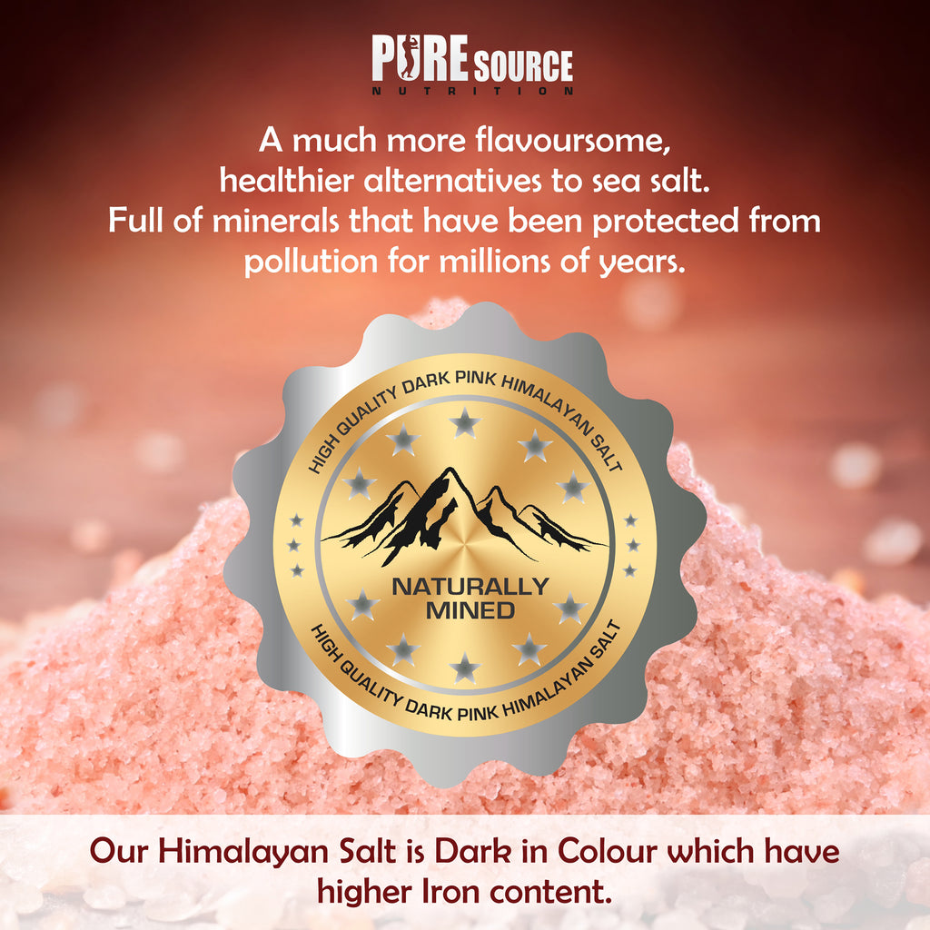 Pure Source Nutrition’s Dark Pink Himalayan Salt is naturally rich in essential minerals and nutrients that support overall wellbeing. It is unrefined, unbleached, and unaltered, offering a truly natural alternative to standard table salt.