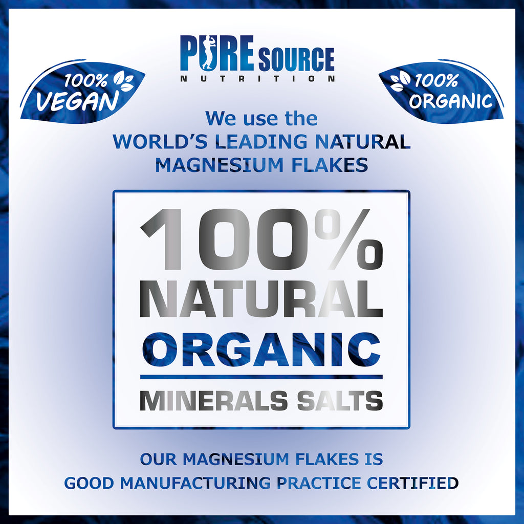 Pure Source Nutrition Magnesium flakes are rich in concentrated magnesium, they are a compound of naturally occurring Magnesium and Chloride and they are used to bathe in to increase Magnesium levels, and for total mind and body relaxation.