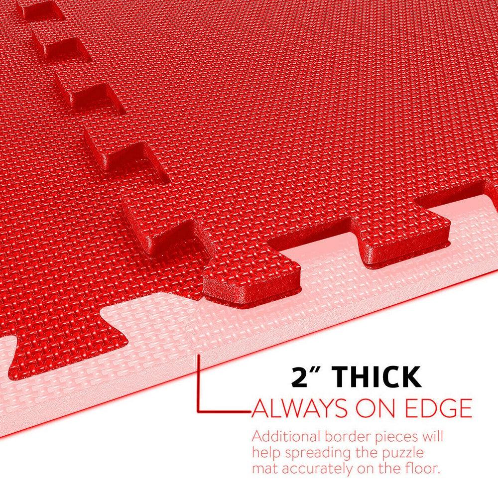 ✅ HIGH-QUALITY, DURABLE, RELIABLE - The highly compressed, environmentally friendly, non-toxic EVA foam with anti-slip surface is perfect as floor layering for fitness and gym spaces, under sports equipment, in child's rooms, workspaces, garages, basements and more. The mat's premium lightweight material also makes it noise- and impact-dampening, warmth-insulating, waterproof, long-lasting and easy to clean with soap and water.
