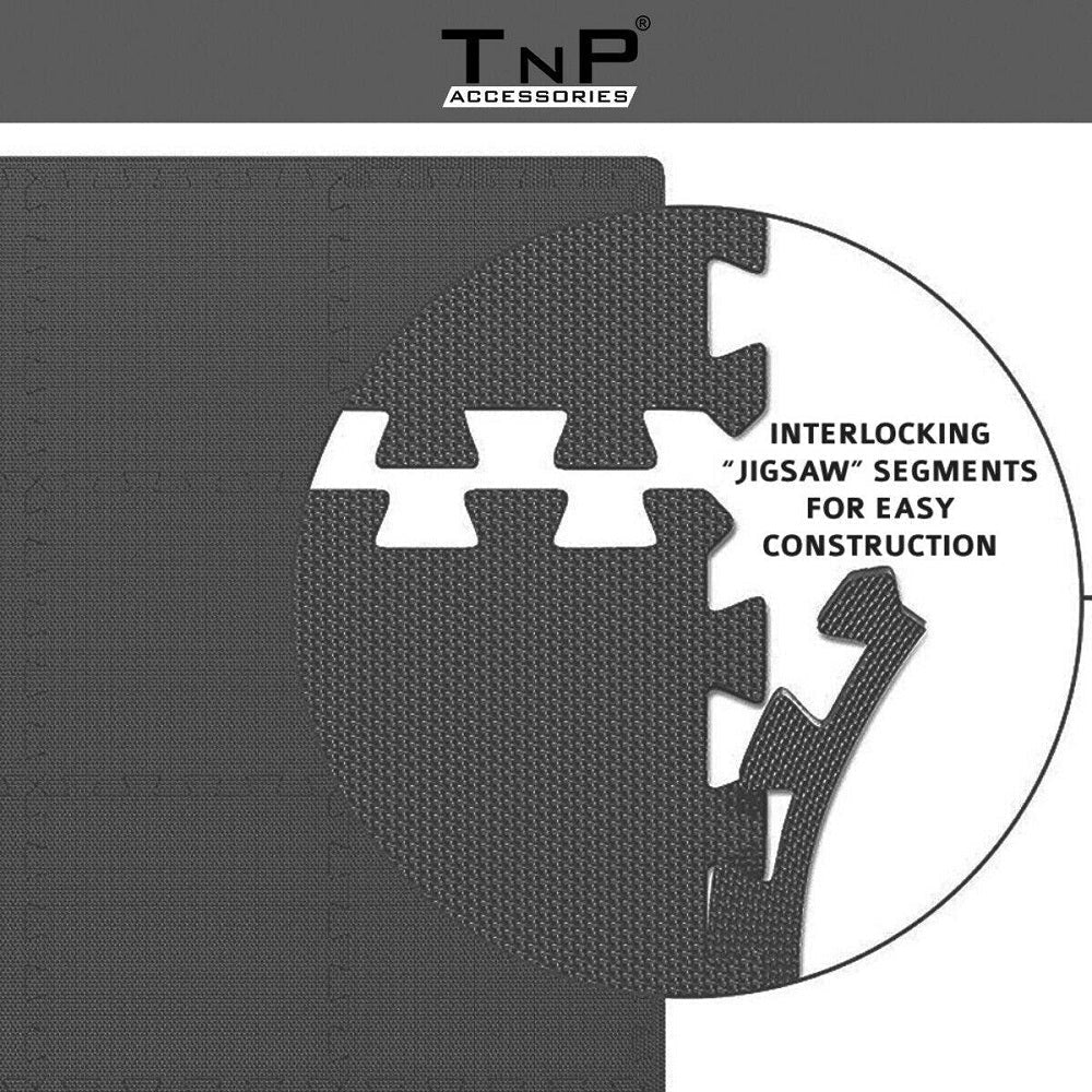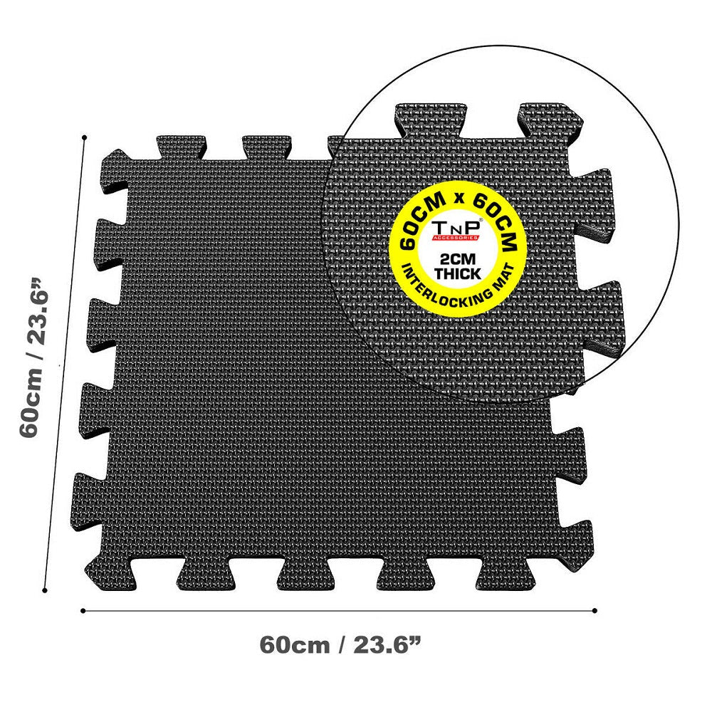 The TNP Distribution Interlocking Floor Mats are ideal for placement under exercise equipment such as treadmills, exercise bikes, benches etc. Made from quality grade EVA, 60cm x 60cm and are interlocking (like a jigsaw) They are 2.0cm in depth. Not only are they ideal for placement underneath exercise equipment, but they are also ideal for putting underneath washing machines, tumble dryers etc. 100% Waterproof Anti Slip Patterned Finish Non-slip, Water Resistant and Easy to Clean Tear Resistant Interlocking Design Reduces Noise and Provide a Firm Shock-Absorbing Surface Easy to Expand Area.