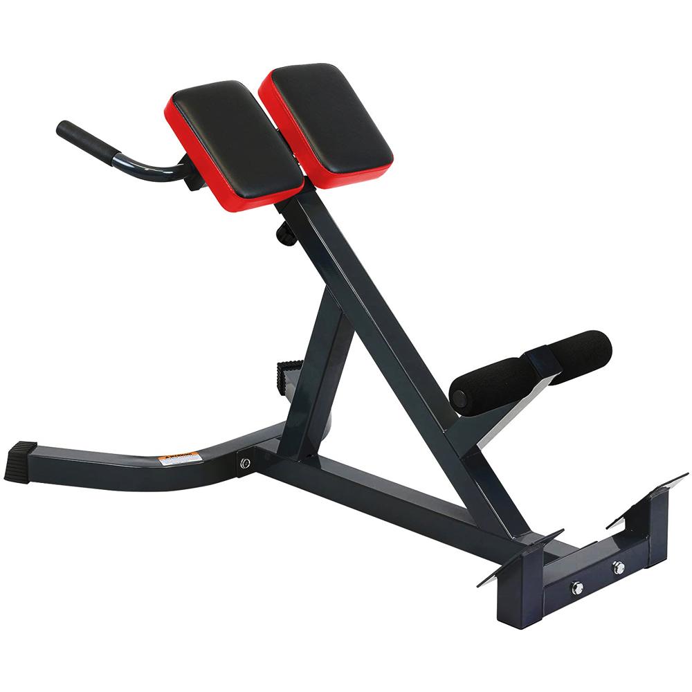 Adjustable Back Hyperextension Strengthen your lower back safely and comfortably on the 45 degree. Adjustable Back Hyperextension is set at 45 degree angle for optimum conditioning. Thick pads provide maximum comfort for all size users. Perfect for strengthening abdominal and the spinal erector muscles to shape your figure. This is ideal for doing back exercise because it's designed to support the hips, stabilize the feet and isolate the back muscles.