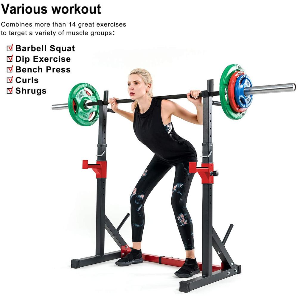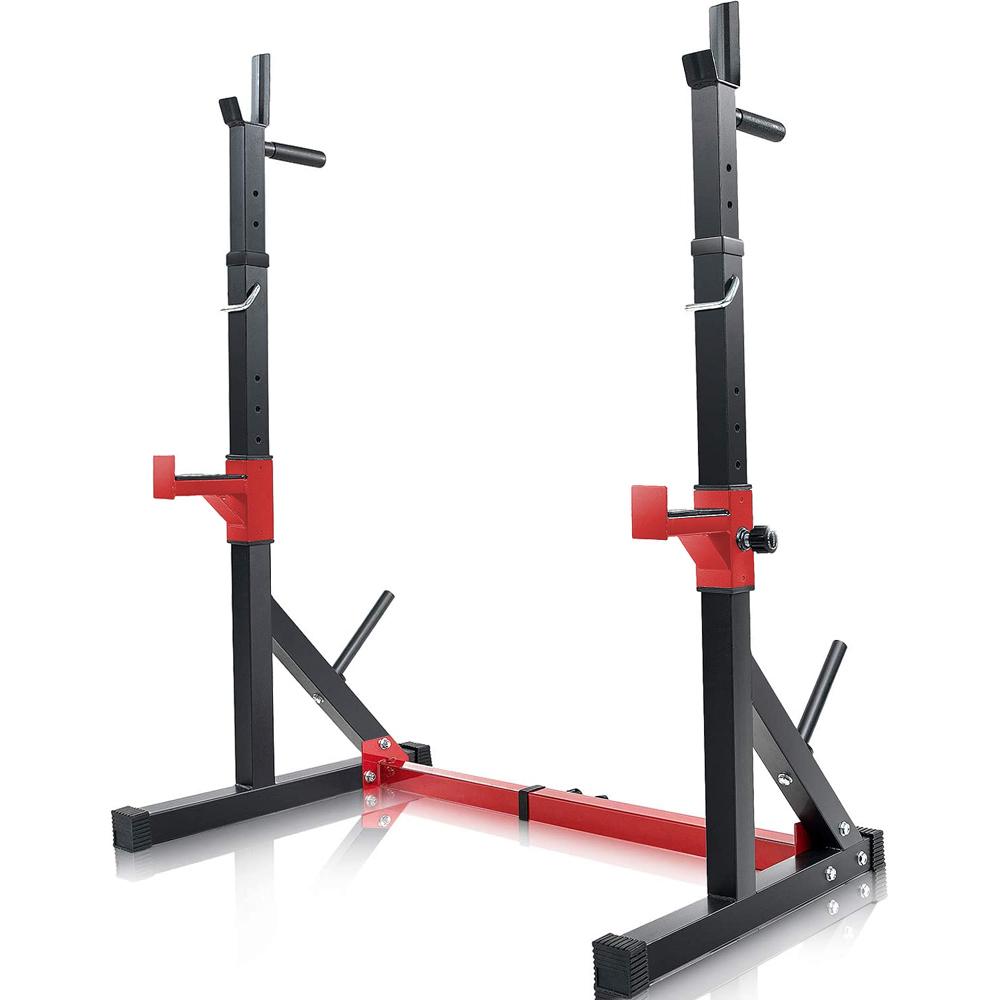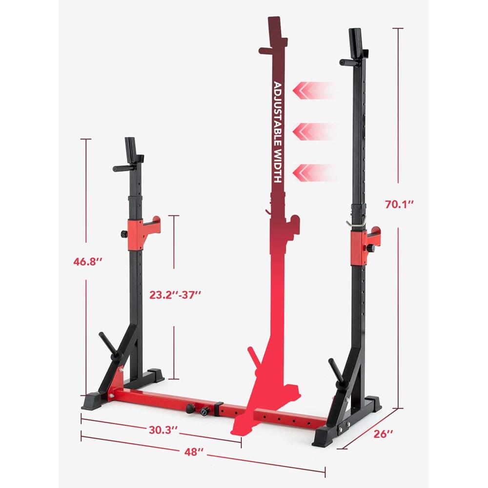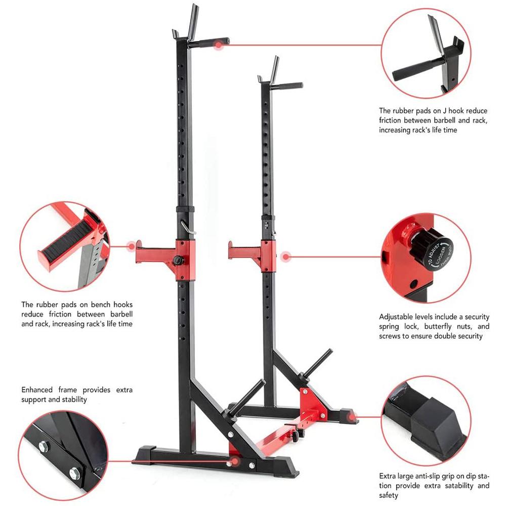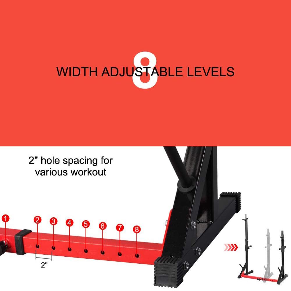 There are 8 adjustable levels on the outer stand to accommodate different bench press heights.