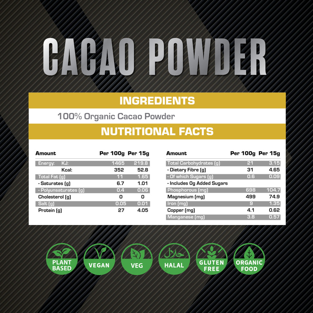 Discover the natural power of Organic Cacao Powder — a nutrient-rich superfood packed with antioxidants and over 300 active substances, including phenylethylamine and serotonin. Sourced from tropical climates in South America, cacao has been treasured since ancient Mayan and Aztec times for its rich flavor and health benefits.