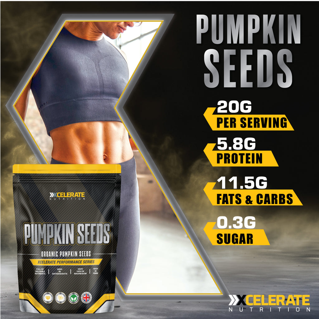 XCelerate Nutrition’s Pumpkin seeds are 100% organic. They are certified grade AA seeds which makes them a good source of magnesium, iron, zinc, essential fatty acids, fibre and potassium. Pumpkin seeds are also an excellent source of alpha-linolenic acid and phytosterols, which play a key role in women's health. They are thought to have a therapeutic effect in general, and preparations are effective in increasing bladder muscle tone and decongesting the prostrate. Researchers have also isolated an amino acid called Cucurbitin that is found only in pumpkin seeds and is thought to be responsible for worm-expelling effects.